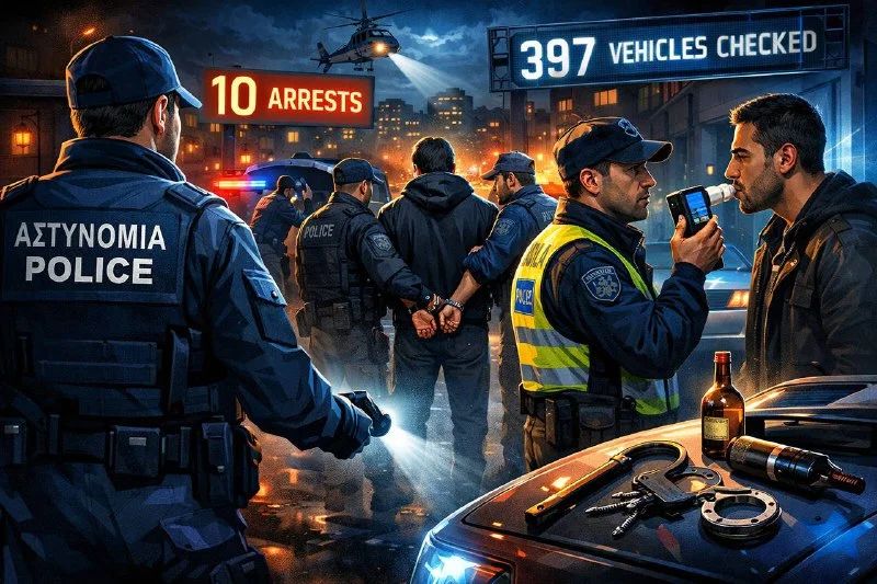 За последние 24 часа полиция Кипра провела серию усиленных профилактических операций в городах. В результате задержаны 10 человек: четверо — за незаконное пребывание в стране, двое — по делам о домашнем насилии, двое — за хранение инструментов для взлома, один — за неявку в суд и один — за вождение в нетрезвом виде с ДТП без пострадавших.