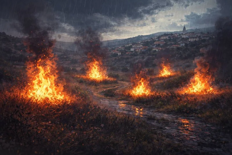 🔥 Серия поджогов под Пафосом: за вечер в Архимандрите вспыхнули сразу пять очагов