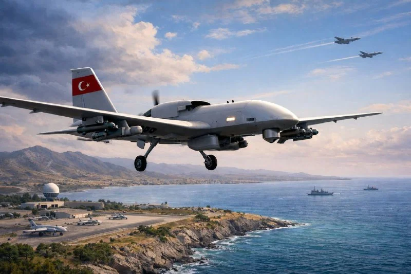 В субботу днём в районе Айос Эпиктитос, на севере острова, был замечен турецкий ударный дрон. По предварительным данным, это мог быть Bayraktar TB2 или Bayraktar Akinci.