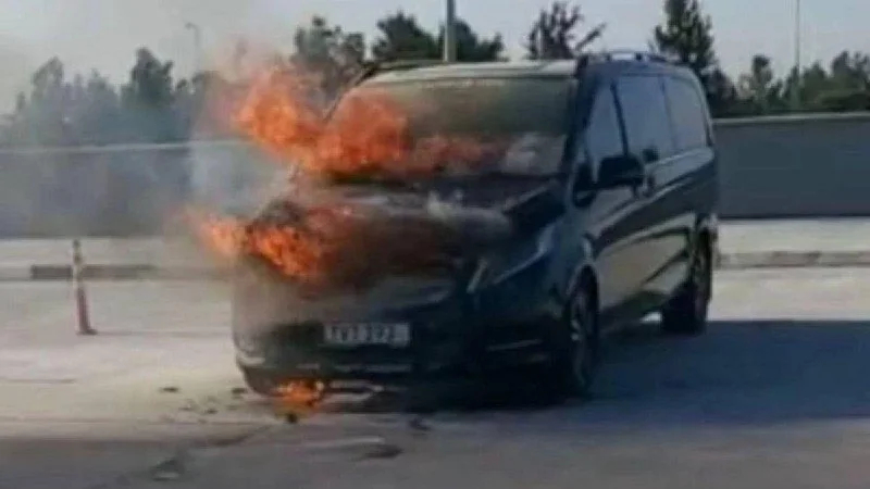 🔥 Утренний пожар в аэропорту Эрджан: микроавтобус загорелся прямо на парковке из-за короткого замыкания
