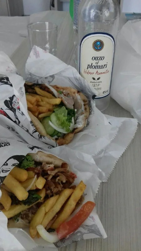 Купи сувлаки. Я за 5 евро беру в питте: 2 шашлыка внутри а остальное как хочешь