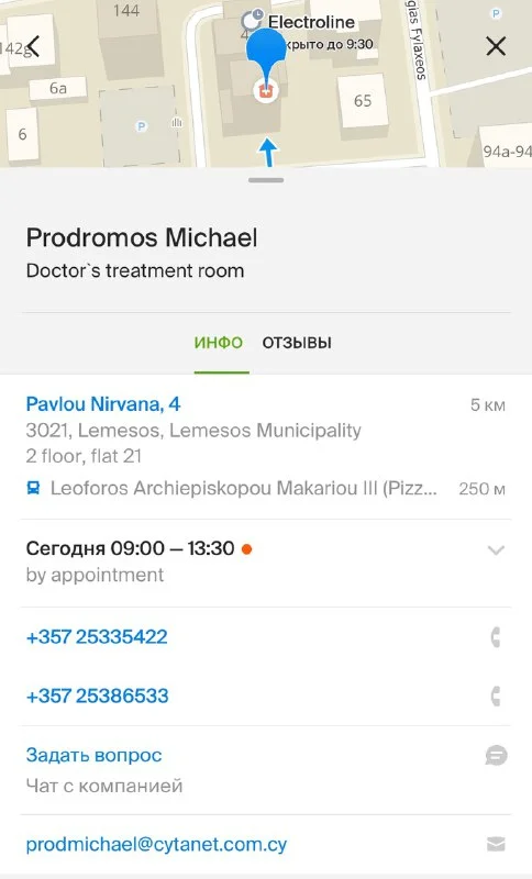 Отличный кардиолог. Звоните заранее, сейчас у всех врачей особый режим приема, у него в том числе. В одну из смен работает русскоговорящая медсестра.