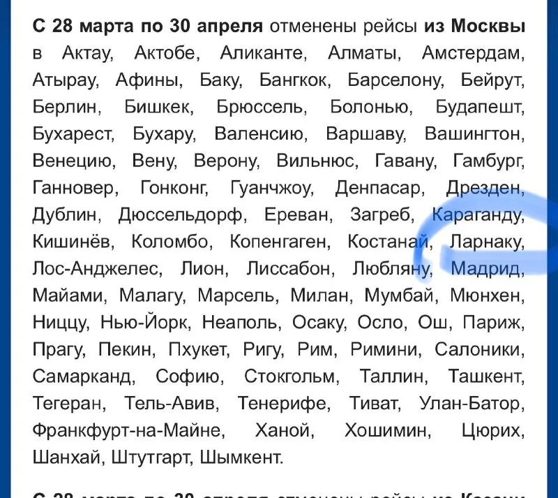 Друзья, сейчас появилась информация, что «Аэрофлот» отменяет регулярные рейсы до конца апреля. В списке стран есть и Кипр.