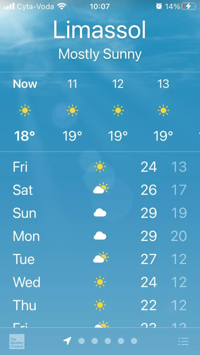 Мы сейчас в Айа напе. Температура днем 18-24, вода 18 градусов, можно купаться. Выходить на 6 часов ...