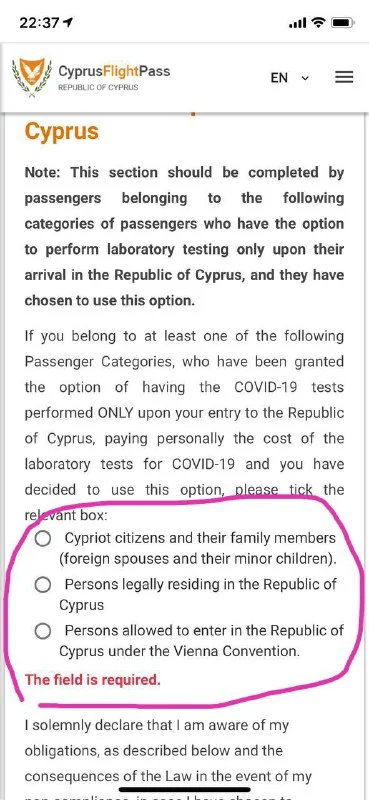 Как турист? Тогда скачайте инструкции отсюда https://cyvisa.org/QA.html - самый первый раздел - Что такое cyprusflightpass? Выбираете свой вариант и по образцу заполняйте.