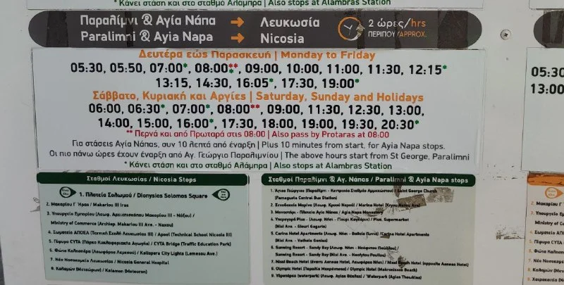 Подскажите как из Айя Напы добраться до Никосии на автобусе. Откуда отправляется автобус?