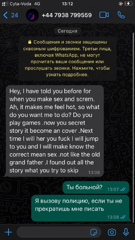 Сегодня с другого номера он мне написал это ( скрин номер 1), а так же кучу сообщений, где он говорит подобные вещи