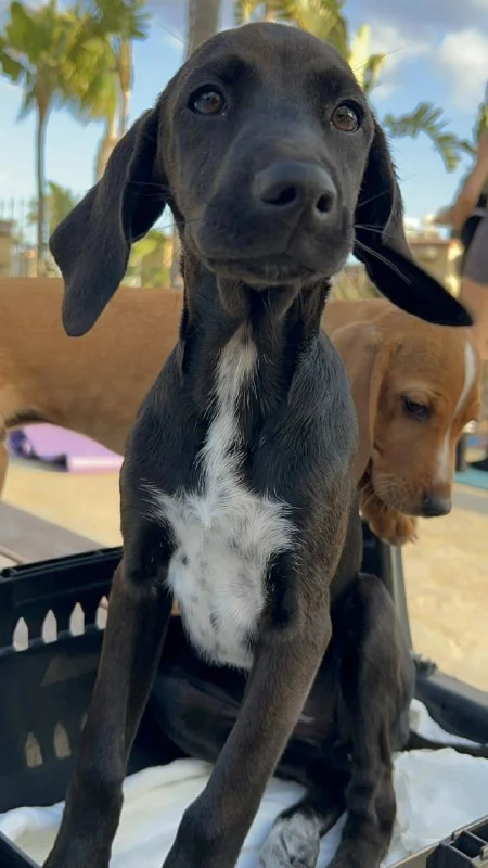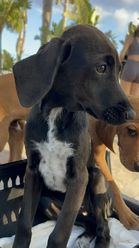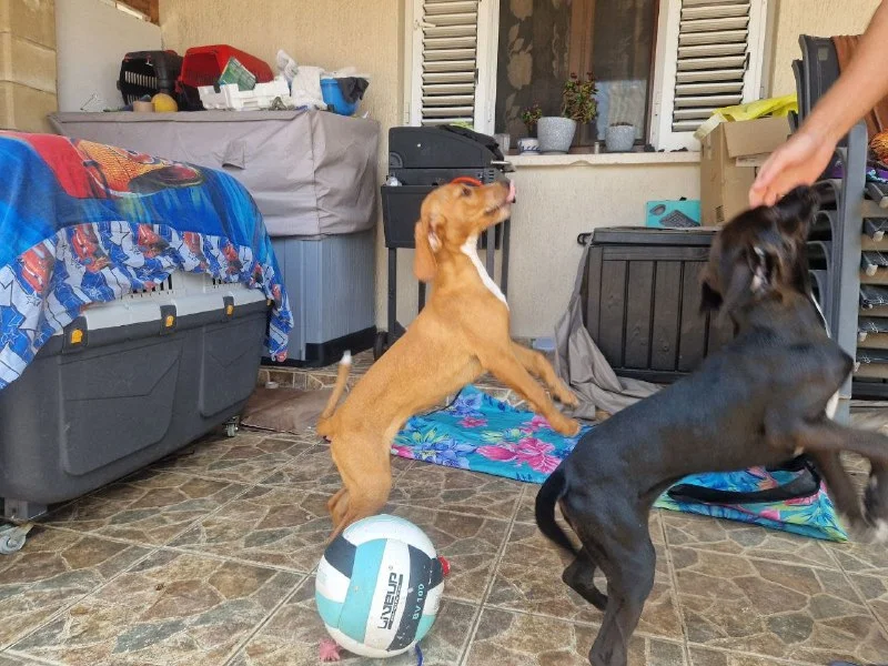 В начале февраля четверо новорожденных щенков были найдены на пустыре в мешке, замёрзшие и голодные. Мы их взяли домой, выходили и вырастили, и теперь двое из них всё ещё ищут себе новый дом с любящими хозяевами. Оба ласковые и спокойные рядом со своим человеком, но поначалу немного боятся других людей, хотя быстро преодолевают страх.
