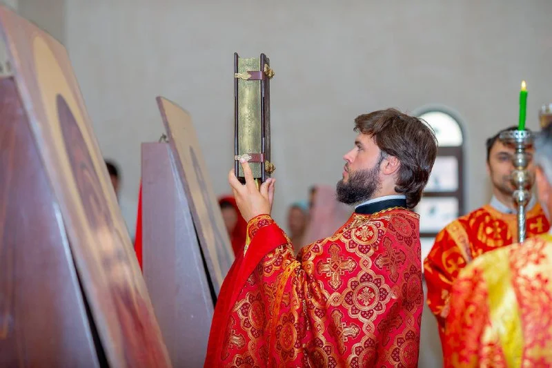 Первое богослужение в строящемся храме