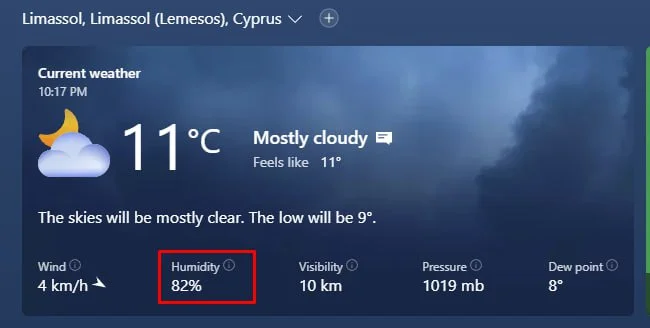 В Никосии влажность меньше, чем в городах на побережье. А по городу особо различий нет