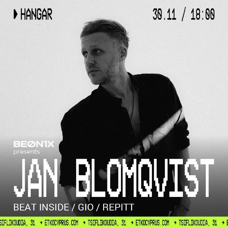 30 ноября в Hangar ETKO (Лимассол) выступит Jan Blomqvist, известный своими live-перфомансами на крупнейших фестивалях по всему миру, таких как Coachella, Burning Man и многих других!