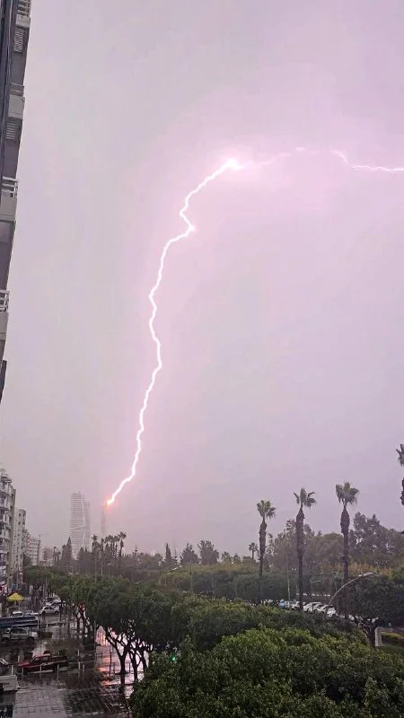Прямо сейчас, во время неистового шторма, который обрушился на Лимассол, молния ударила в крышу роскошной башни One на набережной! 😱 Настоящее зрелище, друзья!