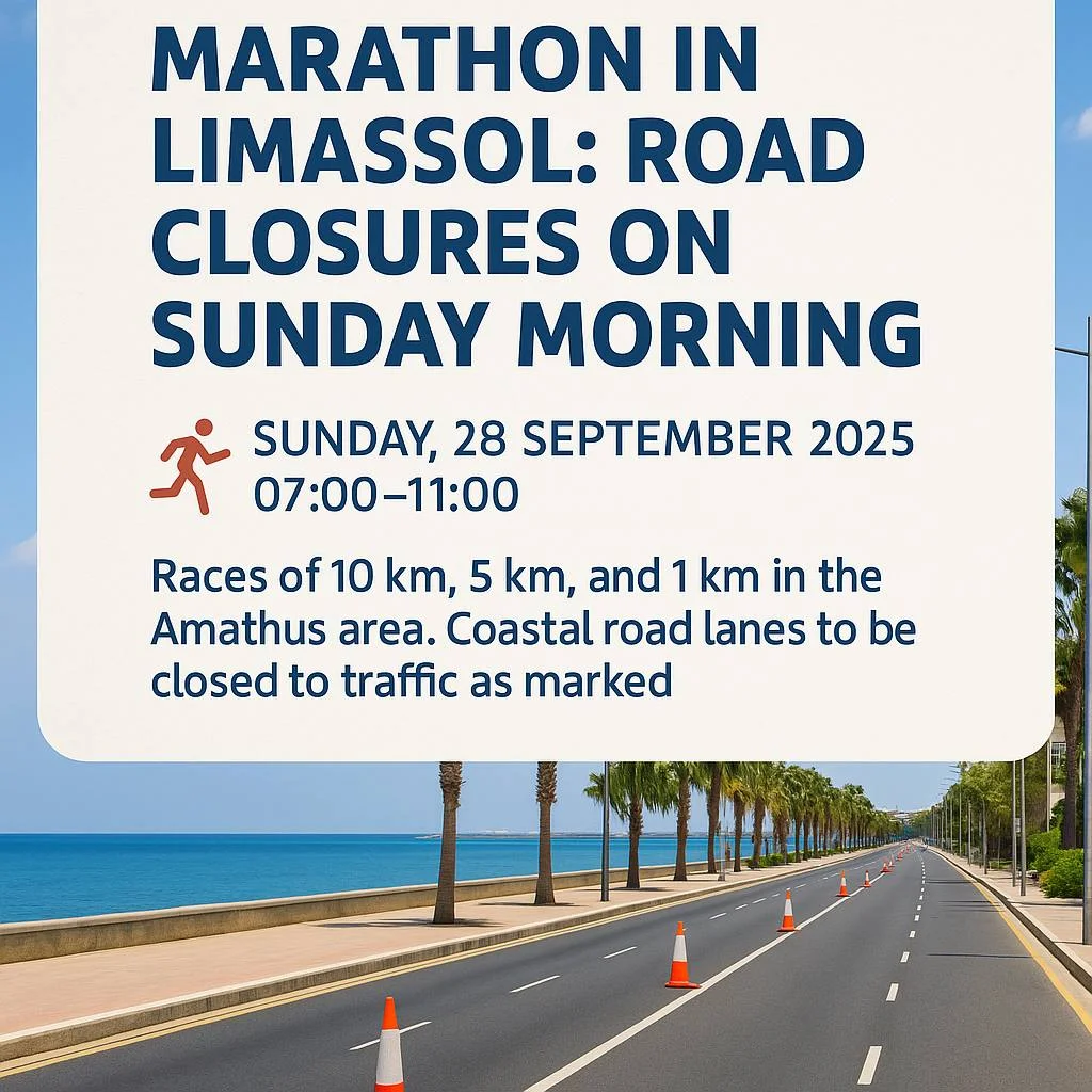 🏃♂️ Марафон в Лимассоле: перекрытие дорог в воскресенье утром