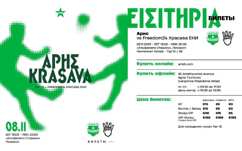 Футбольный клуб «Арис» приглашает сразу на два матча и устраивает грандиозную распродажу в фан-шопе — со скидками до 80 процентов!