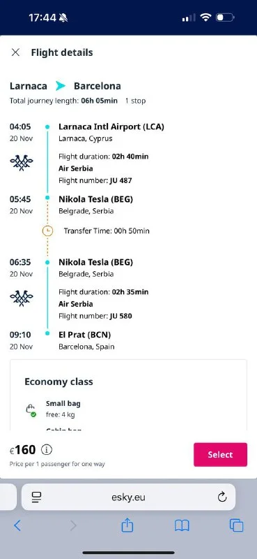 20 ноября, Ларнака - Барселона, пересадка в Сербии