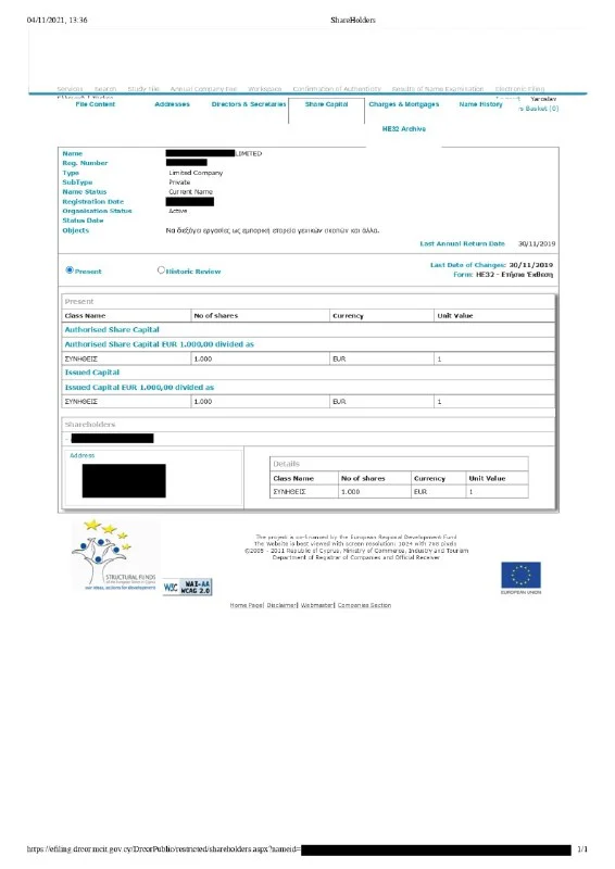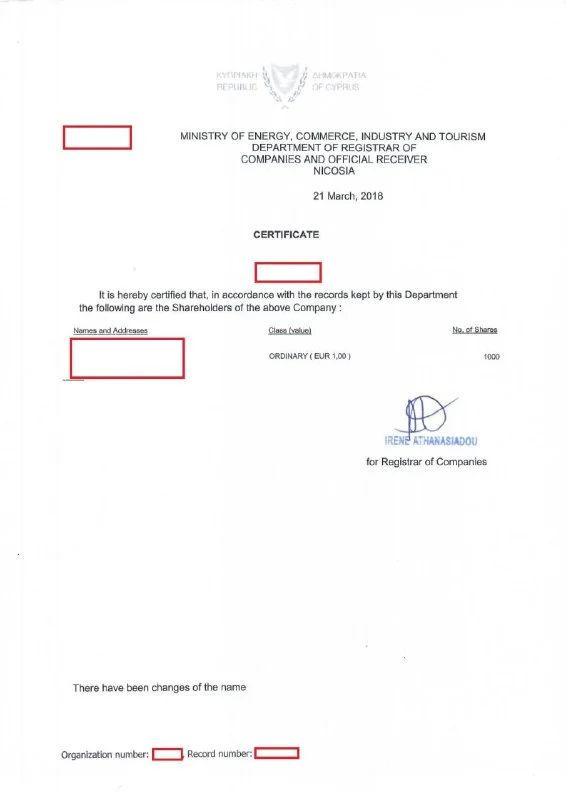 Доброе утро. Возник вопрос. Каким образом на Кипре можно получить выписку из торгового реестра компаний с указанием состава учредителей юридического лица?