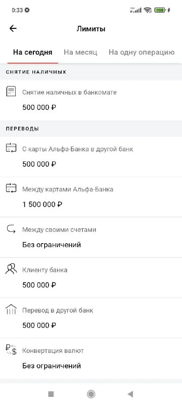 Всем привет. Надеюсь, вопрос по месту задаю, в правильный чат. У кого дебетовая Альфа Трэвэл карта, сколько сейчас лимит на снятие за рубежом? Раньше было 300 000 тыр в день и 500 000 тыр в месяц в эквиваленте. Сейчас полез на сайт уточнить - там противоречивая инфа и как будто стало 50 000 тыр в месяц. Операторы в чате саппорта не врубаются в вопросы, и когда начинают плавать, сливаются из чата. Просто дичь. Звонили голосом по моей просьбе из РФ, оператор сказал что как было 500 000 тыр, так и оталось. При этом на сайте в двух местах написано 50 000 тыр. Может тут кто точно знает по опыту, так как снимал недавно?