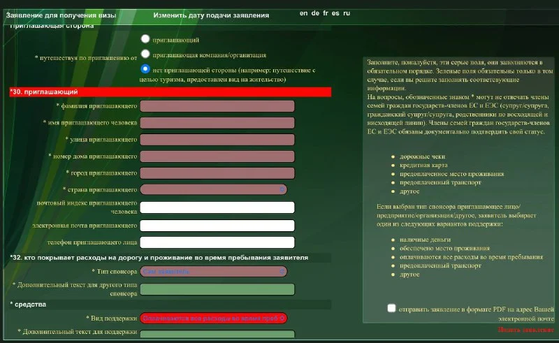 Заполняю, что нет приглашающей стороны, но анкету не даёт отправить с ошибкой и возвращает для заполнения приглашающего.