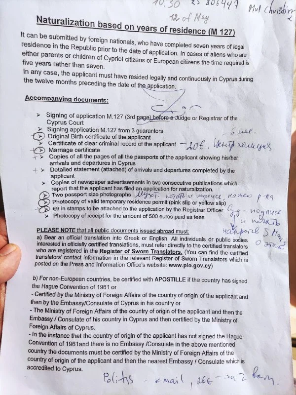 Мы не подавать документы. Мы хотим уточнить, почему 1,5 года ждём документы. Боимся, что потерялись доки. Раньше в Ларнаке в имигрейшене было окошко для информации, а сейчас его нет и дале теперь не знаю где это уточнять. Там все стоят по записи. Думала взять чужой слот, чтобы на консультацию попасть