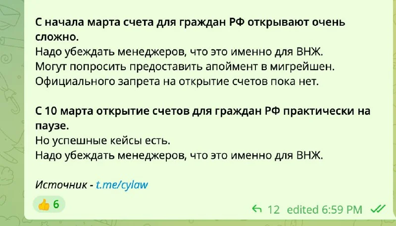 Почитала в гугле, колхозбанк (россельхозбанк) вроде под санкциями, но какими-то не харкорными. Если у кого будет кейс работы ЮП колхоза на Кипре отпишитесь, пожалуйста