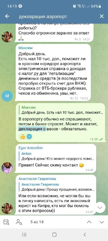 Подскажите пожалуйста, декларировать ввозимую наличность для визитор визы, в каком аэропорту нужно, в рф или в ларнаке? И как правильно это сделать