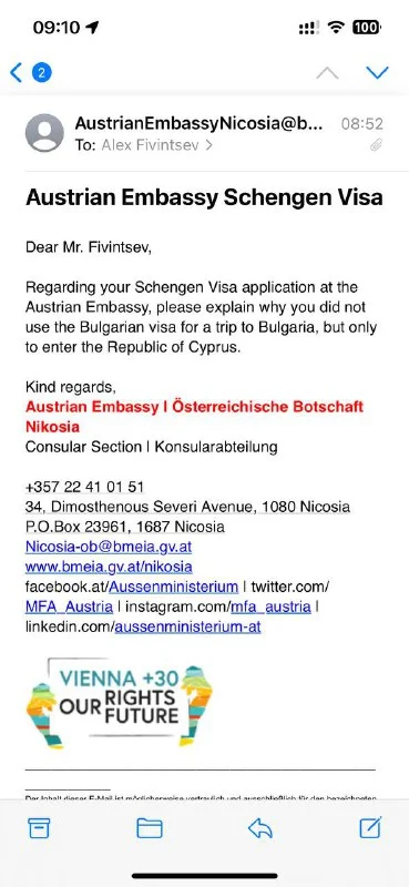 Всем привет! Получил такой дозапрос касательно визы в Австрию. У кого-то было? Какие наилучшие объяснения подходили почему я не распаковал болгарскую визу?