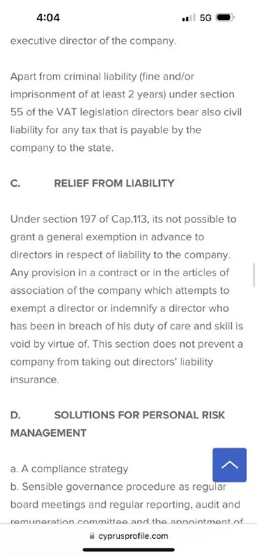 тут достаточно тонкие материи :) в случае беды - первыми всегда отвечают директора и не факт что они смогут перекинуть свою ответственность выше. На Кипре (как и в большинстве common law jurisdictions) за компанию отвечают директора а не акционеры.