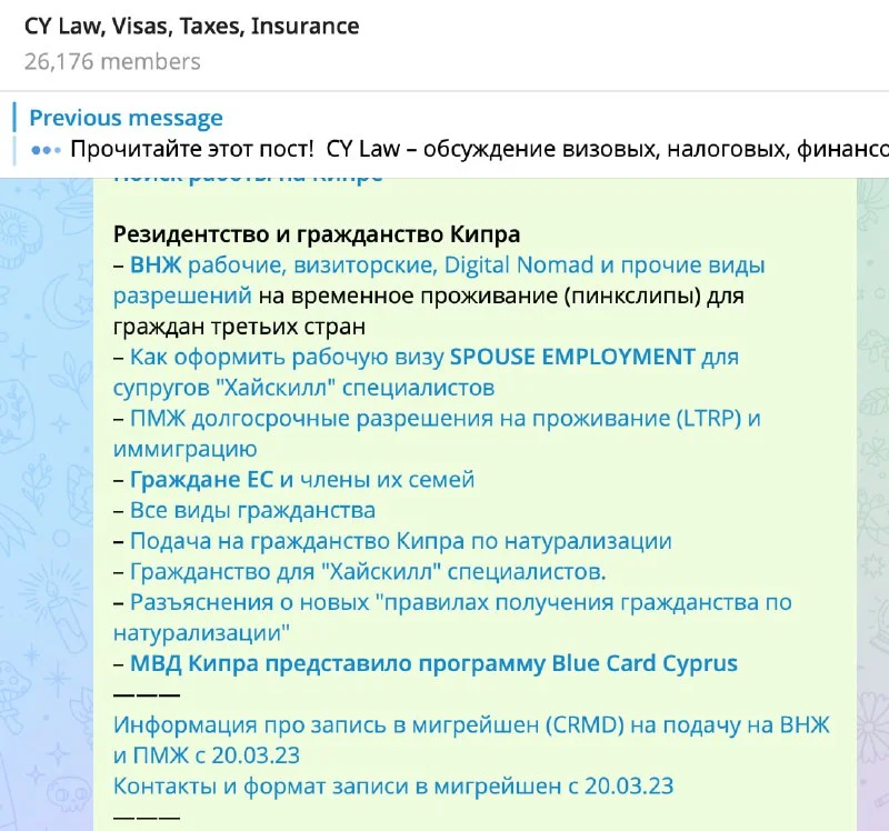 Channels / CY Law, Visas, Taxes, Insurance
