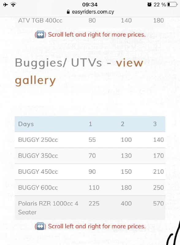 Здравствуйте, скажите пожалуйста стоимость аренды баггов и где в Айя-Напе их можно арендовать ?)