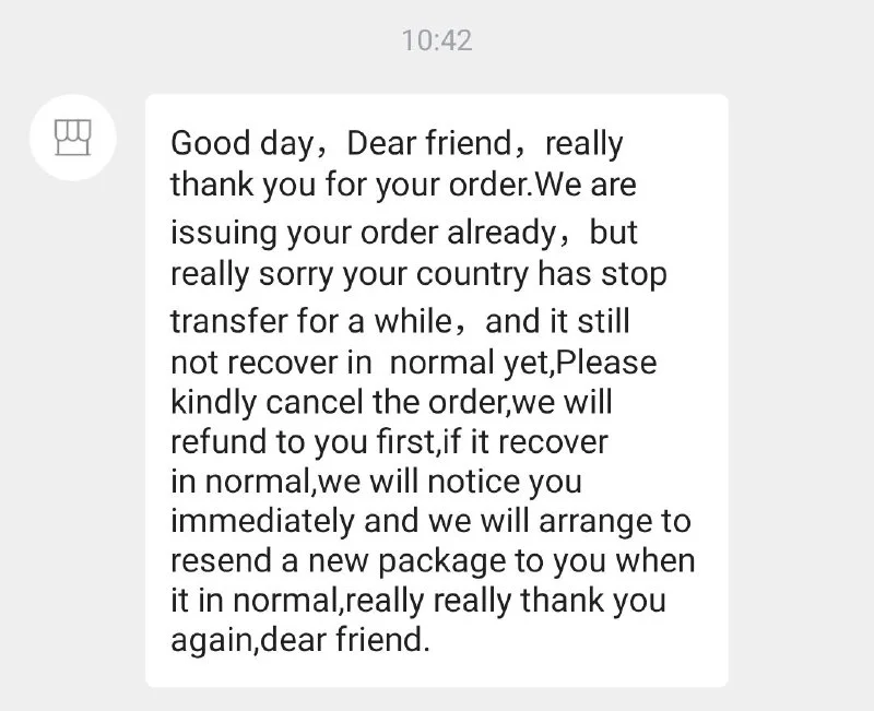 А что сейчас с доставкой с али? Продаван вот такое пишет и не отправляет ордер. Кажется он меня обманывает. Была выбрана доставка EMS