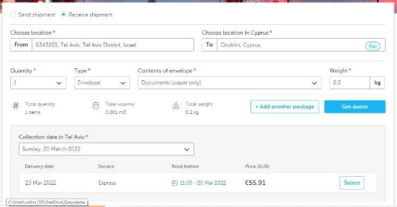 Как можно заказать доставку документа курьером из Израиля на Кипр, кроме ДЧЛ? Обзвонила все крупные компании на Кипре, они только отсюда отправляют.