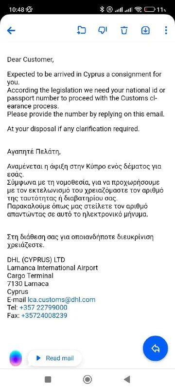 Тут получала в Ларнаке. Тетенька таможенница посмотрела мои документы, описание получаемого на английском и сама заполнила все бумаги. Я оплатила ввозную пошлину.