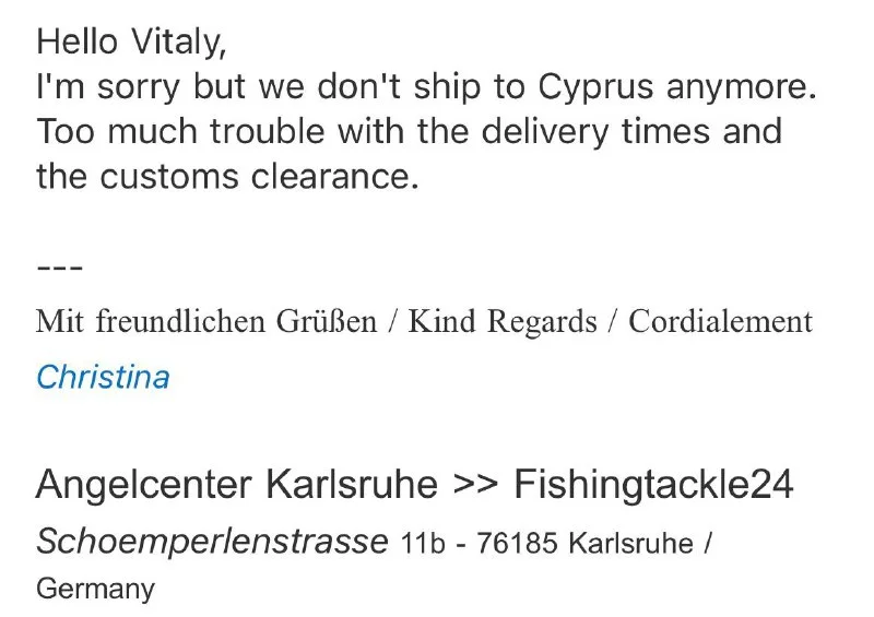 к сожалению, такой ответ становится типовым уже даже для продавцов из стран ЕС 😕