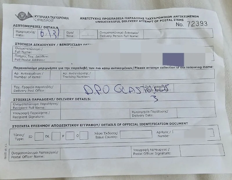 Ошиблась. На Кипре посылку принял ACS.