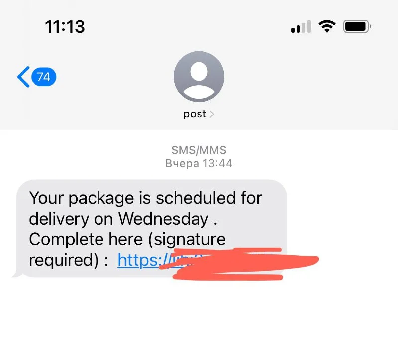 А вам смс не приходила?
