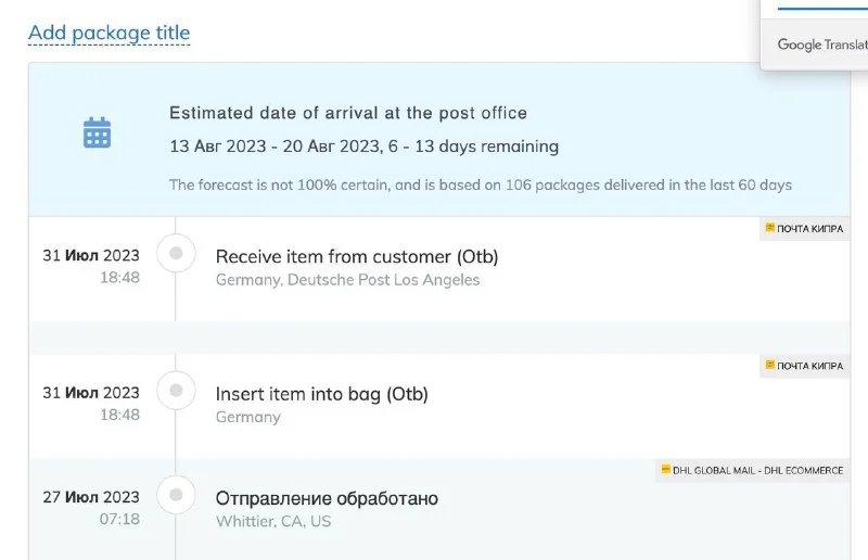 3. Трек номер посмотрите на сайте почты кипра. Немецкая почта - перевалочный пункт.