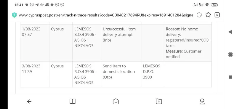 Дату 16 августа я посмотрела на сайте почты России, значит по факту она не имеет никакого отношения к Почте Кипра. А какой статус должен стоять на сайте почта Кипра, чтобы смело можно было идти забирать?