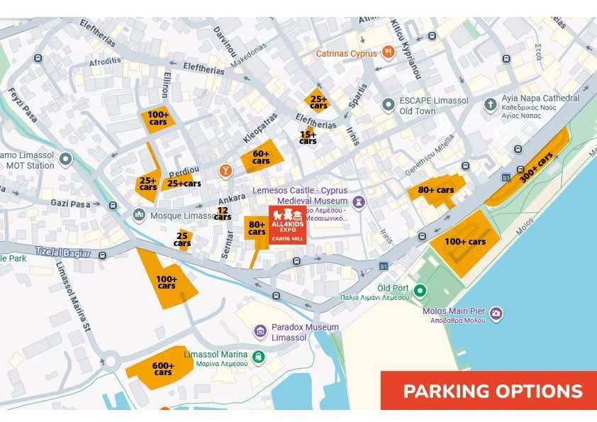 🚗 Где припарковаться на All4Kids Expo в Лимассоле?
