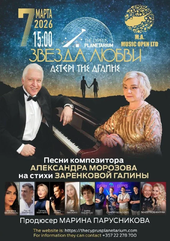 7 марта в кипрском планетарии состоится музыкальный концерт на трёх языках под куполом звёздного неба 🌌