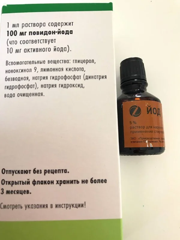 5% йода (5 грамм на 100 мл) и