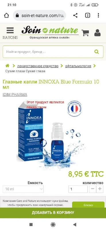 Есть ли на Кипре капли для глаз Innoxa?