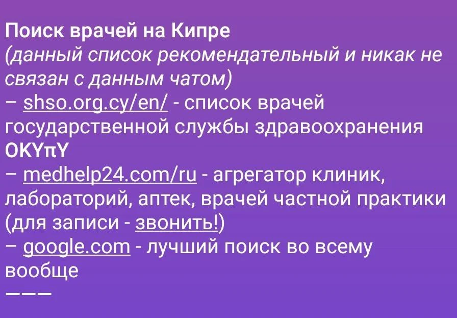 Добрый день посоветуйте пожалуйста гениколога , русскоговорящего, лимассол. Можно как гесси так и ...