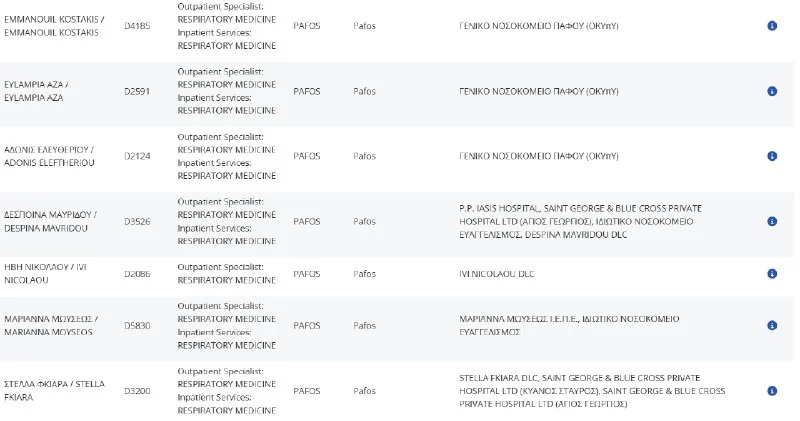 Подскажите, есть ли вообще пульмонологи в Пафосе? На сайте с врачами не нашла в Пафос...