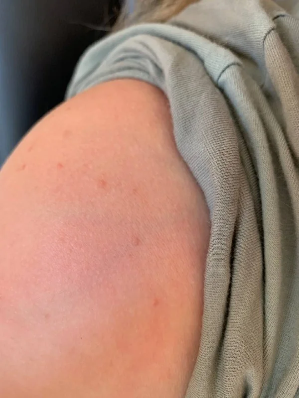 Переехала в новую квартиру и начались вот такие точки как прыщики, они не чешутся и никак не беспокоят. Беспокоит только то, что их становится больше.