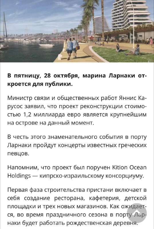 В пятницу, 28 октября, марина Ларнаки откроется для публик...