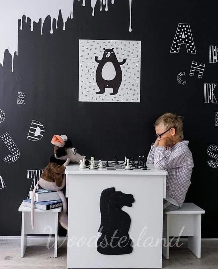 Шахматный стол с двумя ящичками для хранения фигур. Отличная идея для детской.