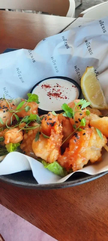 Если я правильно поняла концепцию Noesis — то еду они сервируют только вечером — вот только не помню после 18.00 или 19.00. Раньше — только напитки. Коктейли, кстати, у них бобмические))) а вот еду не удалось пока попробовать.