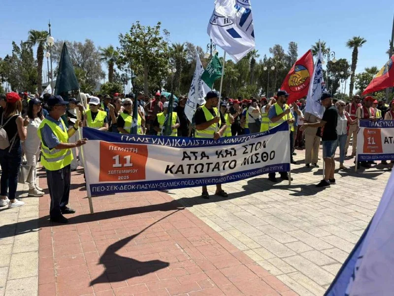 С 11:00 по всей стране проходят трёхчасовые акции протеста 13 профсоюзов. Под лозунгом «АТА для всех» сотрудники собрались у Минфина в Никосии, у административного здания в Лимассоле, в районных администрациях Ларнаки и Пафоса, а также в Паралимни. Профсоюзы заявляют: работники едины и не допустят подрыва системы индексации зарплат.