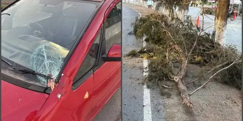🚗 Кипрский водитель чудом избежал аварии, когда крупная ветка кипариса упала на его автомобиль на дороге Менеу – Перволия.