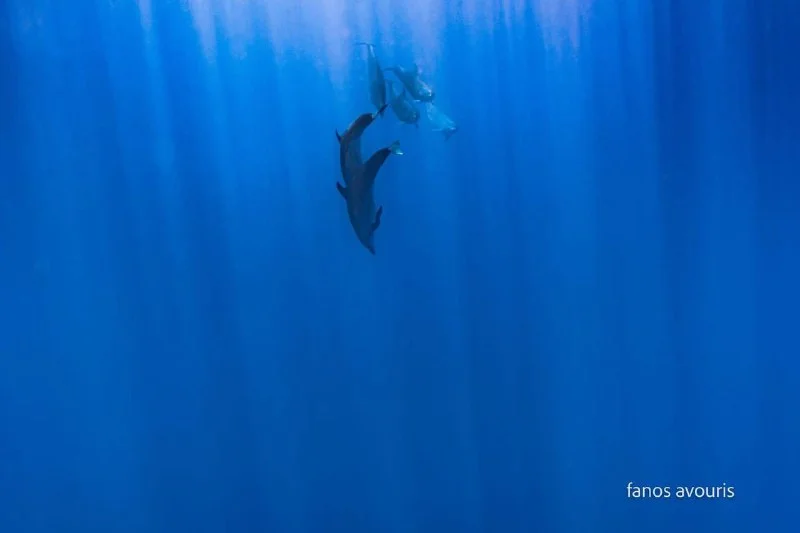 В субботу, в Ларнаке, после соревнований по дайвингу, команда наткнулась на стаю дельфинов всего в 10 метрах от лодки.